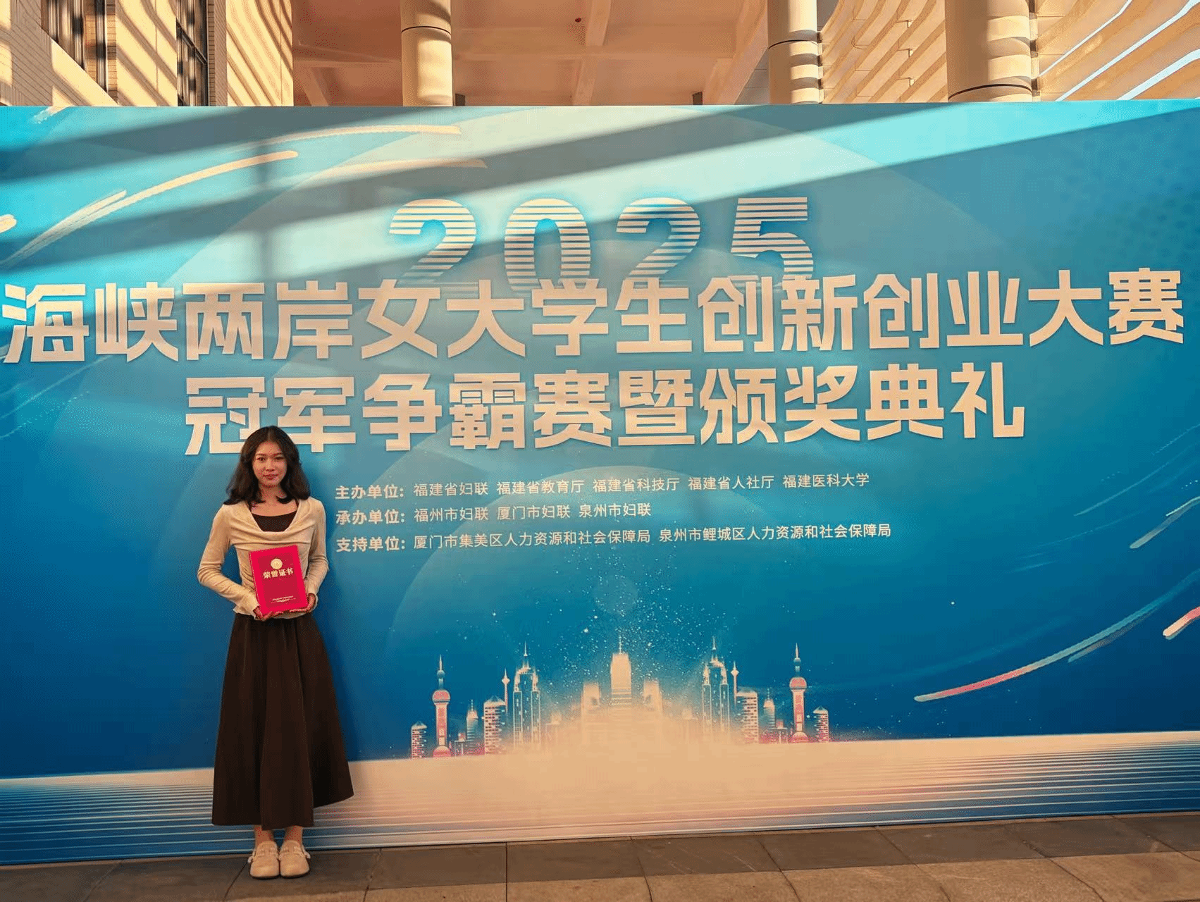 12月20日,2025年海峡两岸女大学生创新创业大赛落幕,我院学子周正艳领衔的“补补糖水,给肌肤喝饱水”项目凭借鲜明的创新理念与扎实的技术实力,从众多参赛作品中脱颖而出,荣获科技创新成长组银奖。