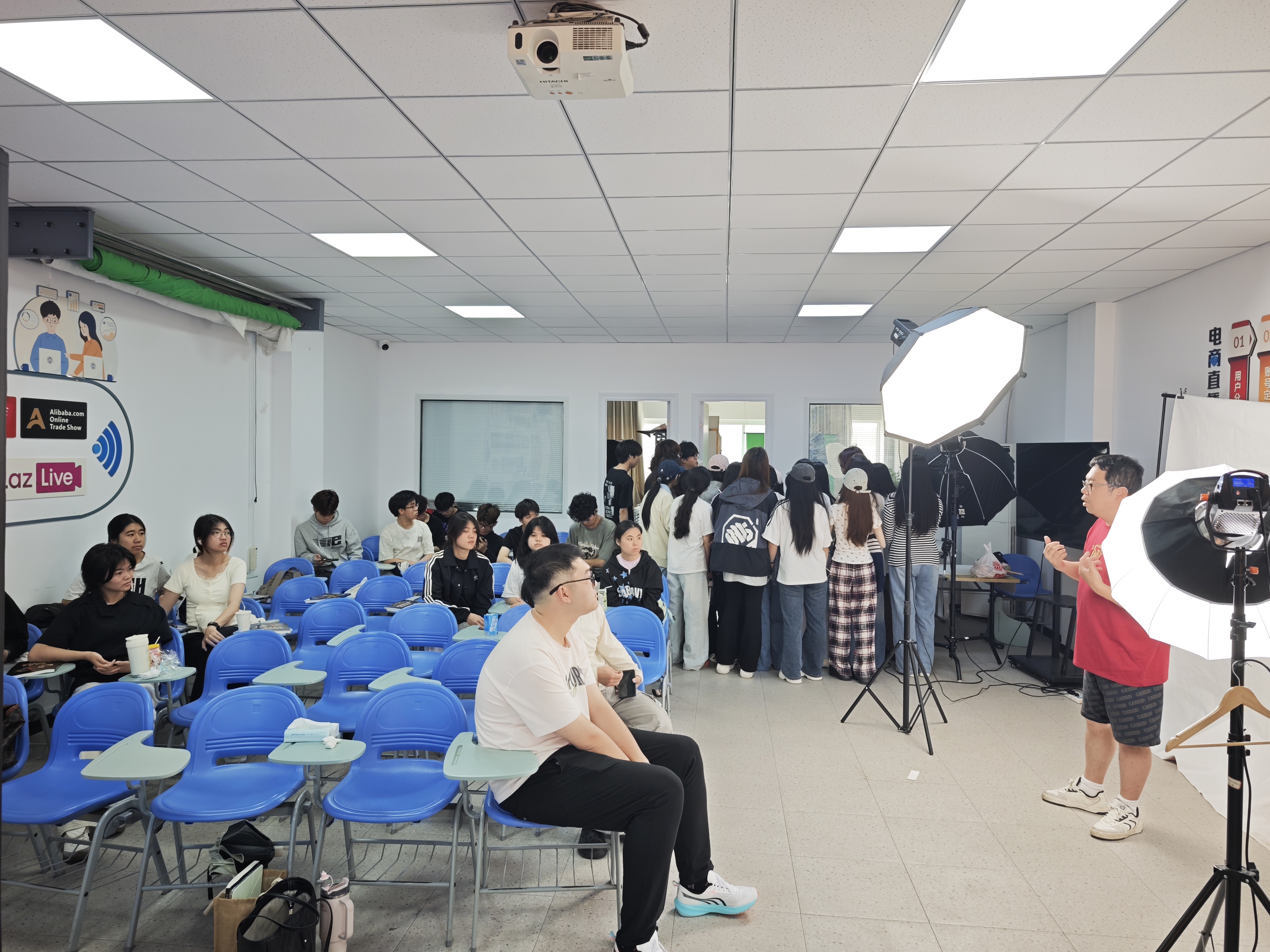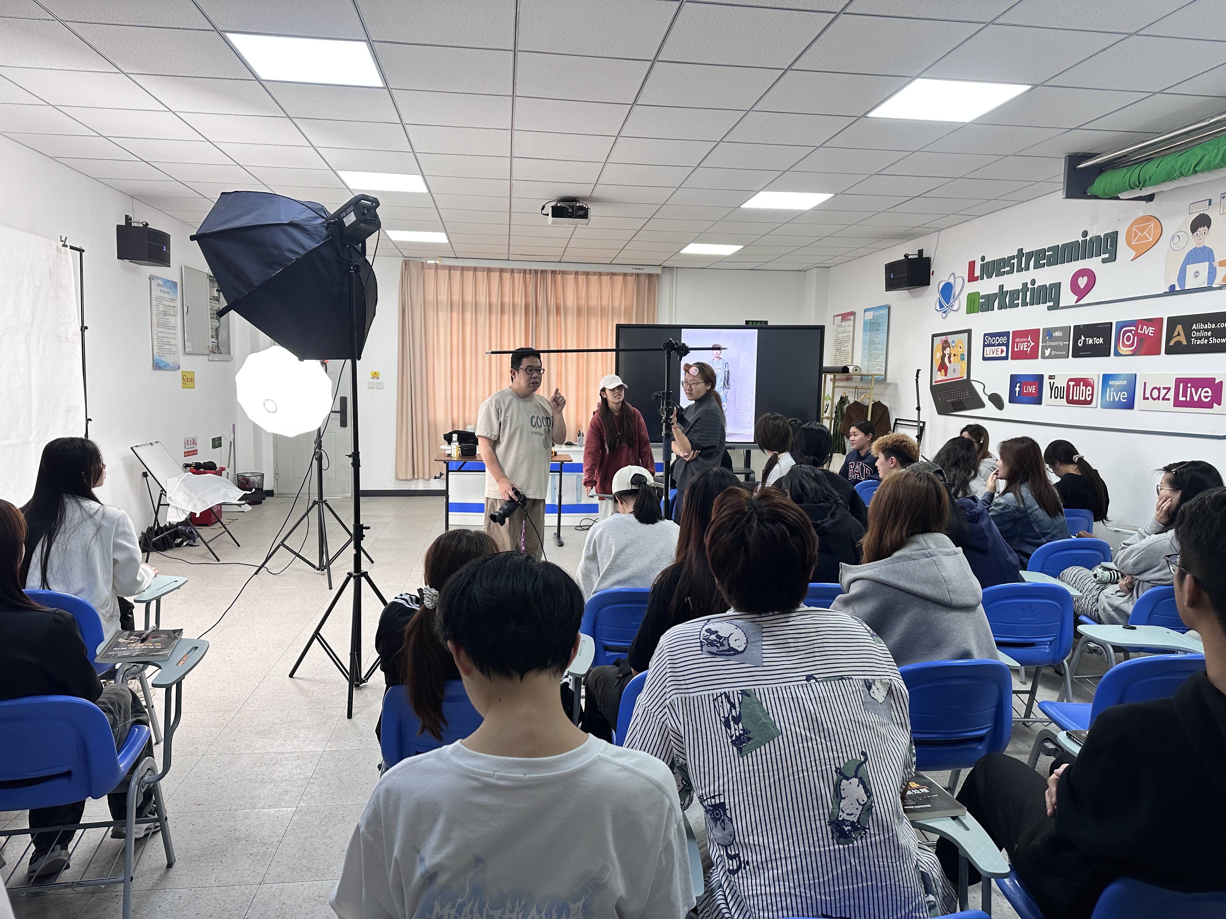为深化产教融合,切实提升直播电商专业学生的实操技能与行业视野。近日,学院邀请厦门茗玥华美服饰有限公司设计总监杨丹男先生进校,为直播3241班讲授《短视频营销技能提升》,为直播 3251 班、直播 3252 班讲授《商品素材拍摄与处理》,给同学们带来一堂干货满满的行业实践课。