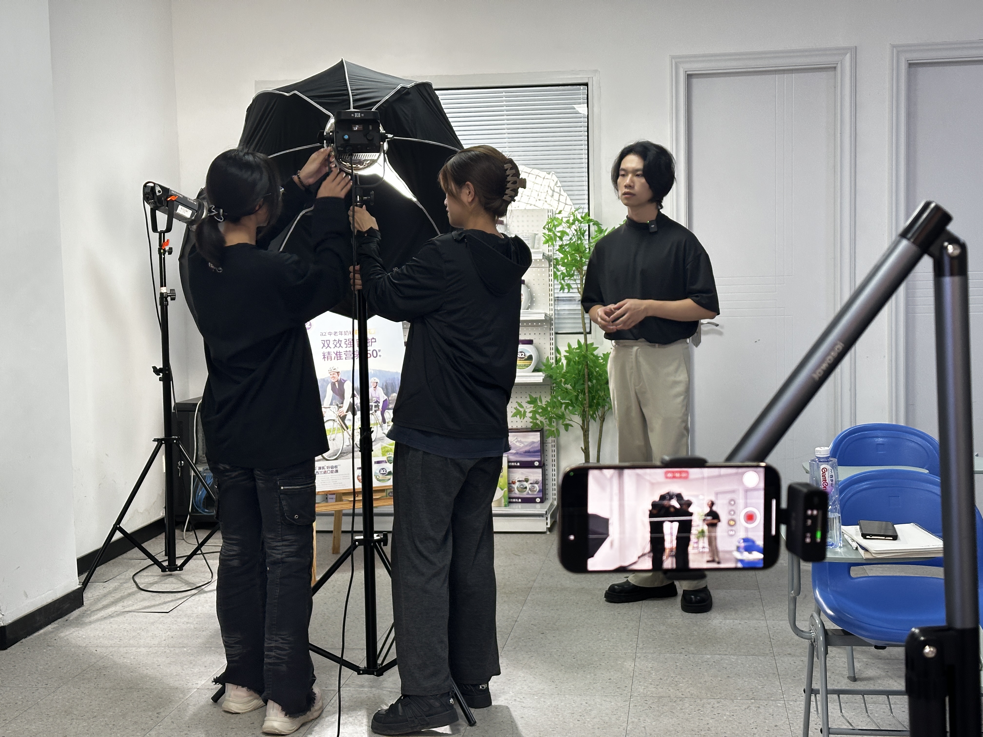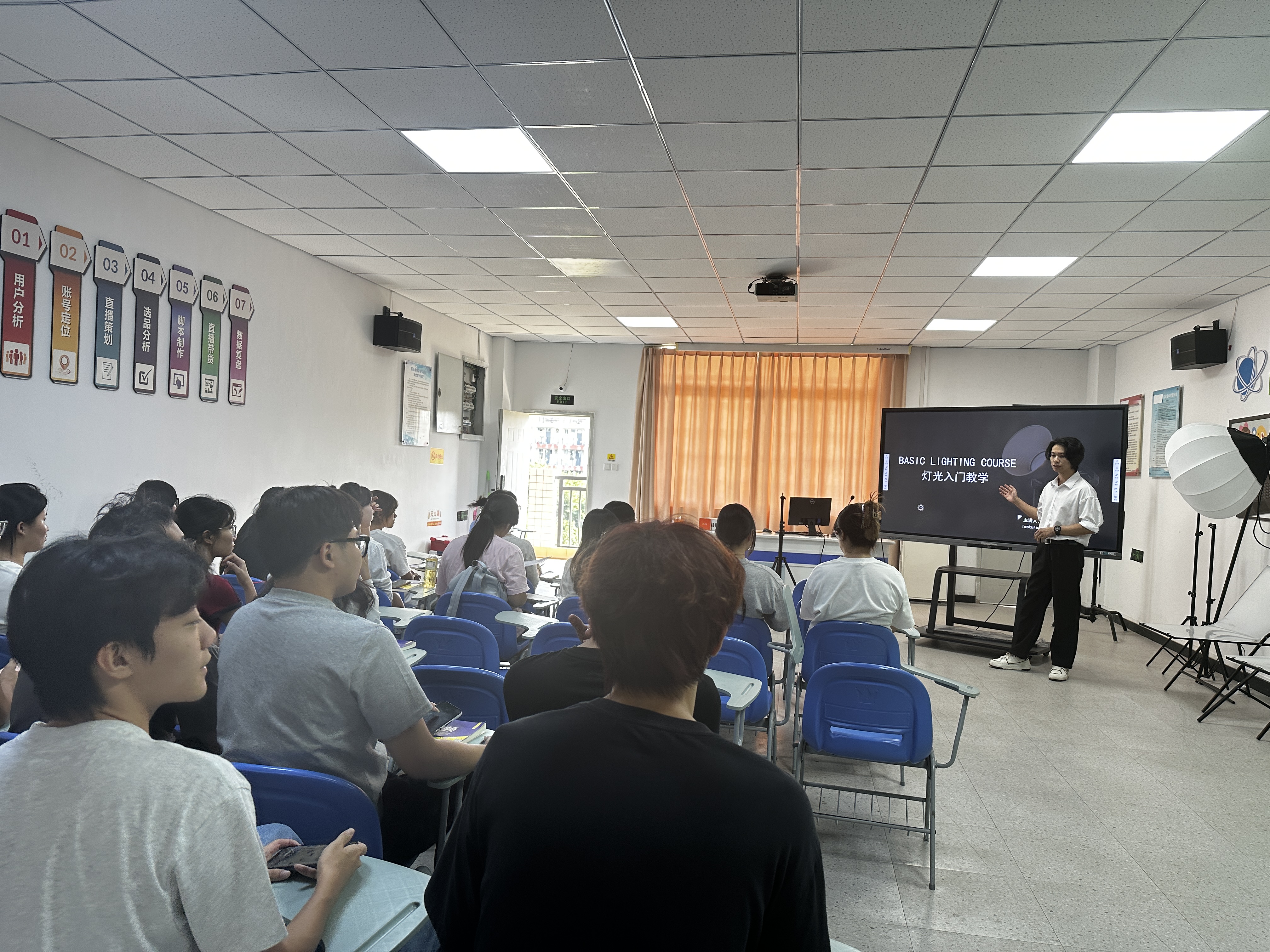 课堂上,杨志伟从主光、辅光的基础运用,到特殊灯光的氛围营造;从不同景别如何传情叙事,到布景道具的巧妙搭配,每一个知识点都结合案例拆解,把专业知识讲得透彻又易懂。实操环节更贴心,他给同学们设计脚本进行拍摄练习,从场景考察、道具挑选到镜头调度,全程手把手指导,针对遇到画面不稳、光线不佳等问题,快速给出解决方案。