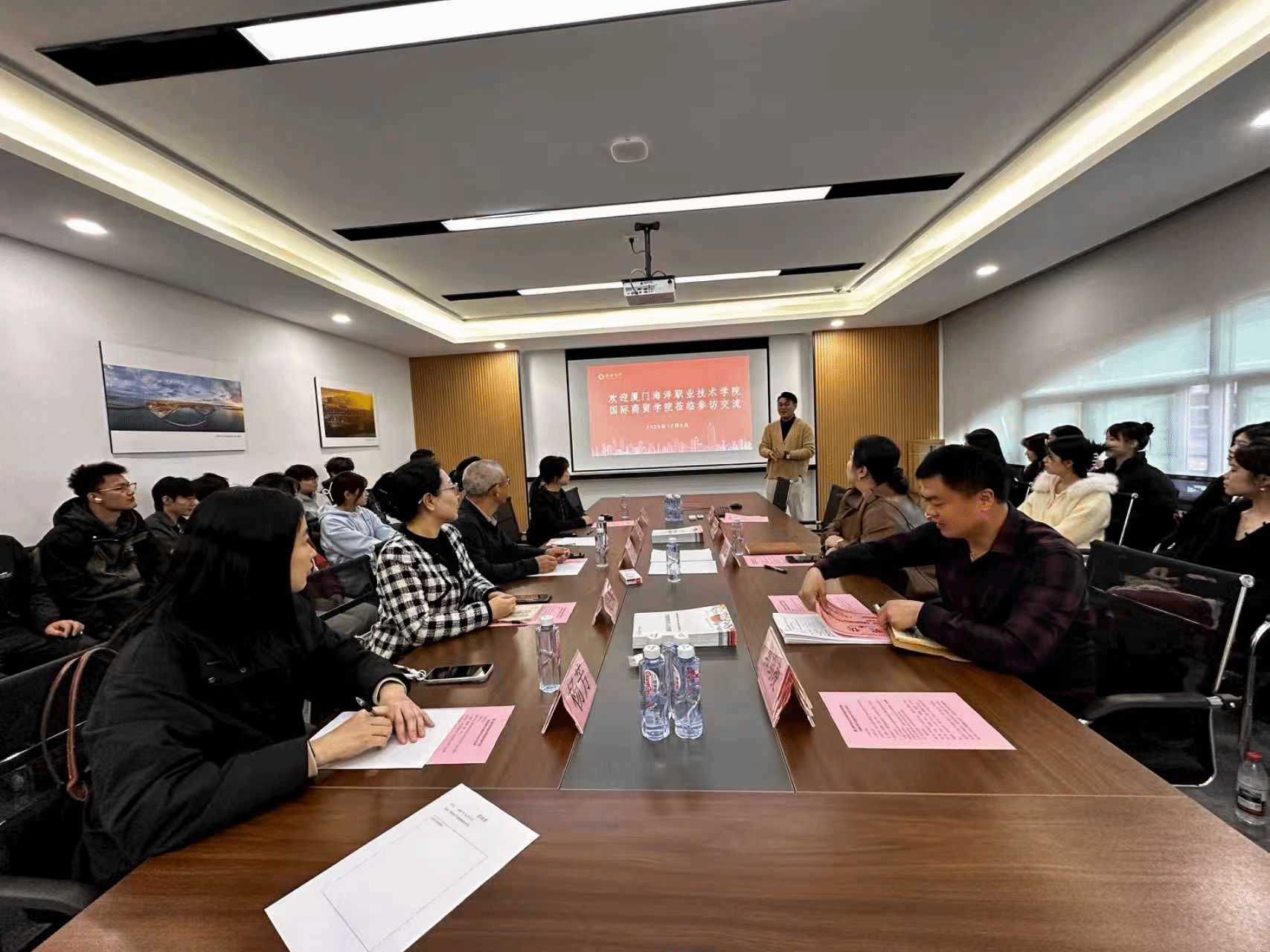 座谈会上,学院党总支书记王火灵、夏商水产集团副总经理战月玥以及学院老师、企业骨干,就夏商水产的产业资源、校企合作新模式以及高职院校电商专业的教学方向进行交流,重点探讨了学生就业需求、直播技能要点等议题,积极发挥企业产业资源优势的同时,锚定高职院校电商专业的海洋特色人才培养方向,并与参会学生开展互动交流。