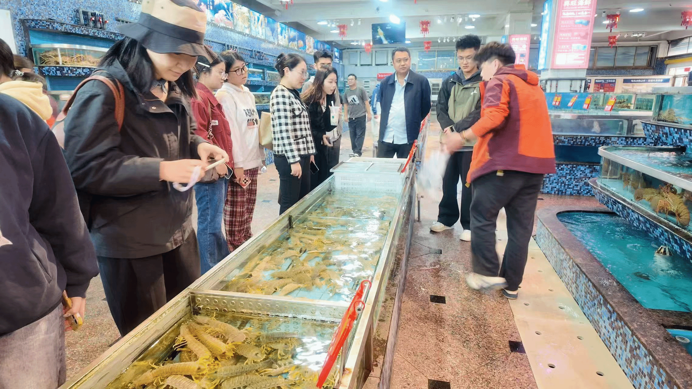 在实地参访环节,学生深入兴旺海鲜城、北堤休闲渔业等海鲜交易市场学习了解夏商水产核心品类的流通交易。学生纷纷表示,全天的活动既有直播实操的技能锤炼,又有产业一线的实地认知,让抽象的电商运营知识落地为具体的产业实践。