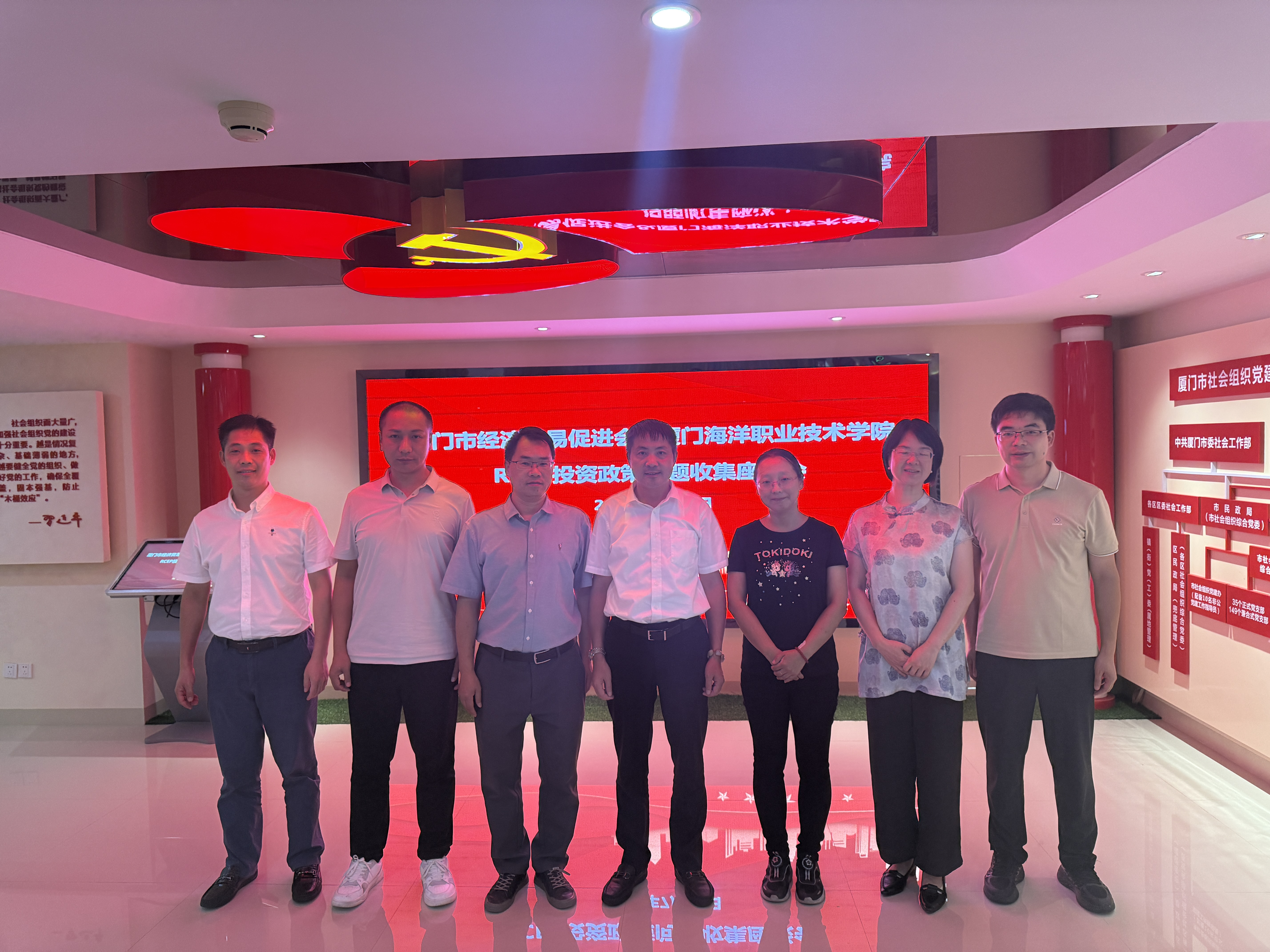 为进一步凝聚政府、企业与高校三方合力,精准服务助力中国企业“走出去”战略,7月15日下午,学院副院长罗娟娟率国际商务教研室主任唐筱芳、RCEP研究中心负责人林存文、专任教师周法法一行,走访厦门市经济贸易促进会(以下简称“厦门经促会”),就共同组织会员企业参与投洽会专场活动开展深入座谈交流,并达成合作共识。厦门经促会会长柯崇荣、副会长欧阳君、秘书长丁炜杰及会员代表李汶治等参加座谈会。