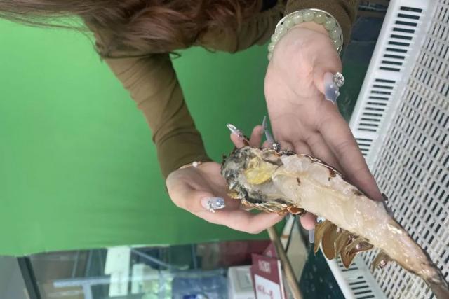 龙虾直播间里的透明水箱装满清澈的水,新鲜活泼的龙虾游弋其中。观众透过直播画面能清晰地观察到龙虾的动态和特征。台面上还有对半切开的新鲜龙虾,龙虾肉鲜红,光泽诱人。主播向观众展示龙虾的处理方法,手牌上还标注着龙虾的来源和特点,让观众对龙虾有更深入的了解。