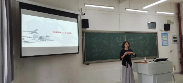 课上,苏敏围绕“海上货物运输”主题,着重介绍了烟草出口业务流程中港口业务、海运业务及报关报检业务中的各项注意事项,分享了她在刚开始接触冻品进出境业务时积累的新人容易犯的失误等。