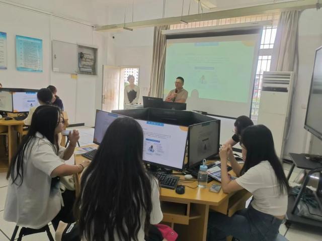 蒋肇兴首先跟学生分享了他本人的创业经历,介绍了其公司从小到大逐渐成长壮大和转型的历程,为学生们的职业生涯规划提供了建议。接着,他向学生们介绍了跨境电商B2B发展的不同模式,强调了跨境电商运营实战演练的重要性,勉励大家要多学多练,有条件的情况下要尽量在真实的运营环境中锻炼自己,在做中学、学中做,不断提升职业技能和本领。他还介绍了外贸企业的岗位设置和运营模式,并表达了校企合作的意愿,希望能够为学弟学妹们提供专业学习指导和实战练习的机会。