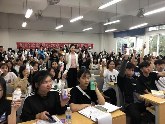 娃哈哈的张经理给同学们分享了在营销实战中需要做什么、应该怎么做,指出了营销过程需要对自己销售的产品和产品的定价有深入的了解,并介绍了娃哈哈的几款新产品,鼓励同学们积极参与调研活动。结合课本所学知识,激发大胆创新的思想,制作有创意的视频,勇敢亮出自己。