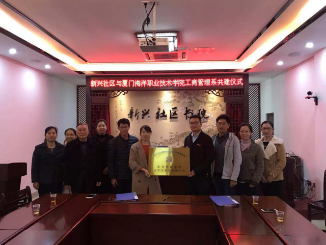 ​     1229日上午,我院工商管理系与翔安新兴社区签署共建协议。通过共建实现资源共享,互通有无,进一步拓展大学生的实践平台,培养我院大学生的社会实践能力、社会责任心。