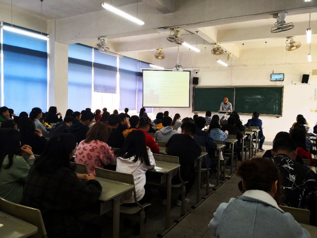 4月2日下午,工商管理系在我院安校区3201教室举办校园游校企合作活动暨研学旅游分享会。活动邀请全国优秀导游员、厦门市五一劳动奖章获得者、全国名导进课堂师资库成员,现任厦门厦旅宝中欢兔旅行社助总张敬峰、资深研学旅行拓展培训师黄永进行导游知识培训与研学旅游经验分享。工商管理系旅游管理教研室教师金晓春、李辉、潘勤奋、邓珏、郑晋华、吕琼艺、谢吉红、唐梓萱、李志伟及旅游管理3181班同学、旅游管理3182班同学、中英文导游协会、旅行爱好者协会成员共110余人参加本次交流活动。校企合作单位厦门知游旅行社赵超阳副总经理、厦门知游信息科技公司唐许帅总经理、培训部经理吕瑛、欢兔旅行社总经理助理杨露珊、欢兔旅行社青少年教育师何邈等到场聆听。