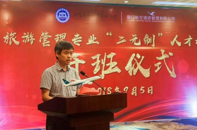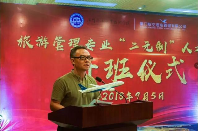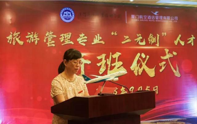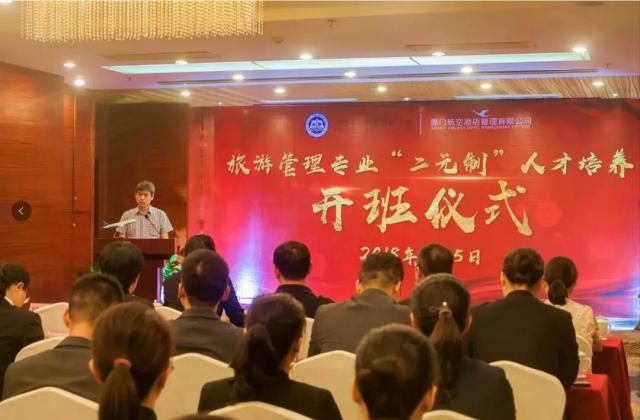 学院相关部门负责人,旅游管理专业教师和厦航金雁酒店管理团队、全体“二元制”班学员参加了开班仪式。