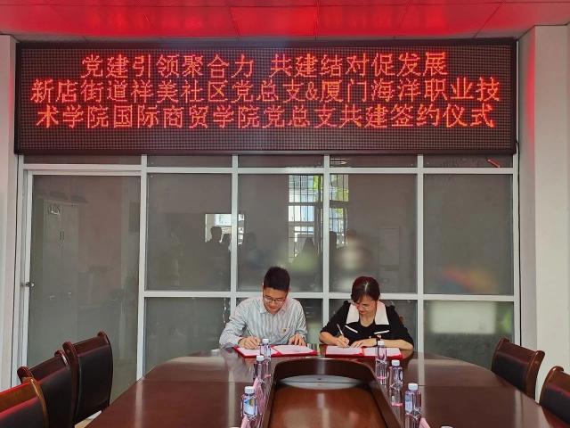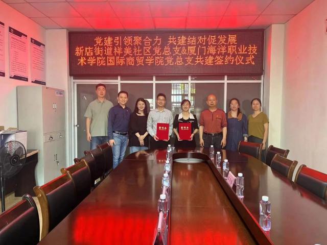 为深入学习贯彻党的二十大精神,不断增强党组织凝聚力和战斗力,发挥党建+邻里中心作用,4月3日下午,我院党总支与翔安区新店街道祥美社区党总支举行党建共建签约仪式。学院党总支副书记黄昆仑、团总支书记赵世一、组织员彭幸子、学生第二党支部书记陈炜丹及祥美社区党总支书记、居委会主任许月娇等参加此次共建签约座谈仪式。