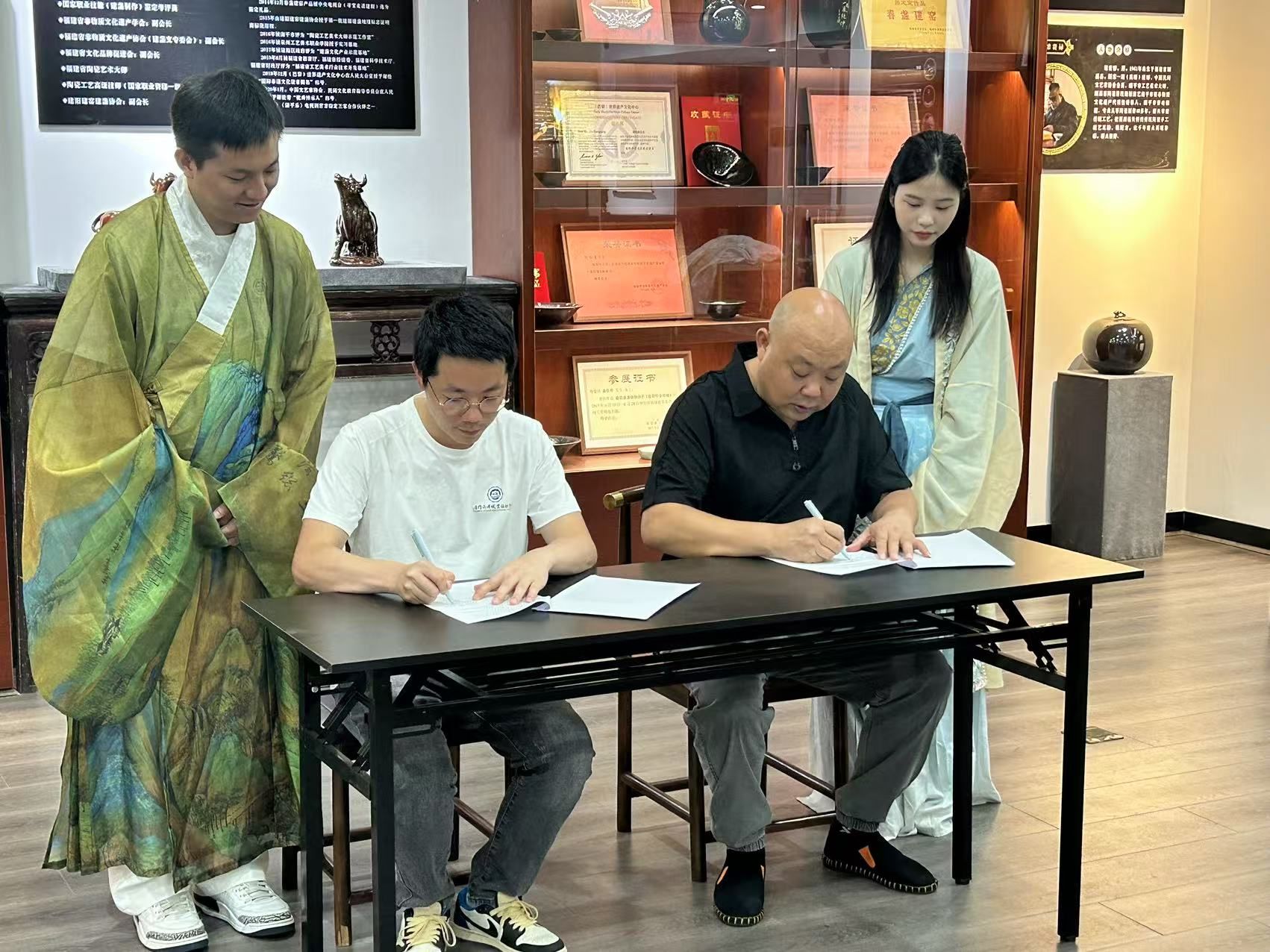青砖黛瓦间镌刻着岁月的痕迹,非遗技艺里流淌着历史的回响。“墨韵寻本”实践队助力非遗传承,在建阳这座充满文化底蕴的千年古城中探寻非遗的“本源”,彰显将个人成长融入文化发展大局的责任担当。“墨韵寻本”实践队与南平市建阳区千荷堂建本建盏文化研学基地(福文化示范实践基地)、福建省春盏建窑文化博物馆正式签订共建协议,并举行大学生社会实践基地授牌仪式。实践基地将成为传统文化活态传承的“孵化器”,青年学子的参与为非遗注入新鲜血液,学生也在实践锤炼中真正实现知行合一。