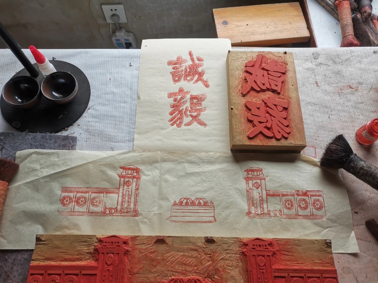 体验非遗技艺的同时主动融入嘉庚精神,队员们亲手设计并制作含有嘉庚元素建筑、头像及“诚毅”校训的建本作品,献礼中国共产党成立104周年,表达对党的忠诚与对国家的热爱。