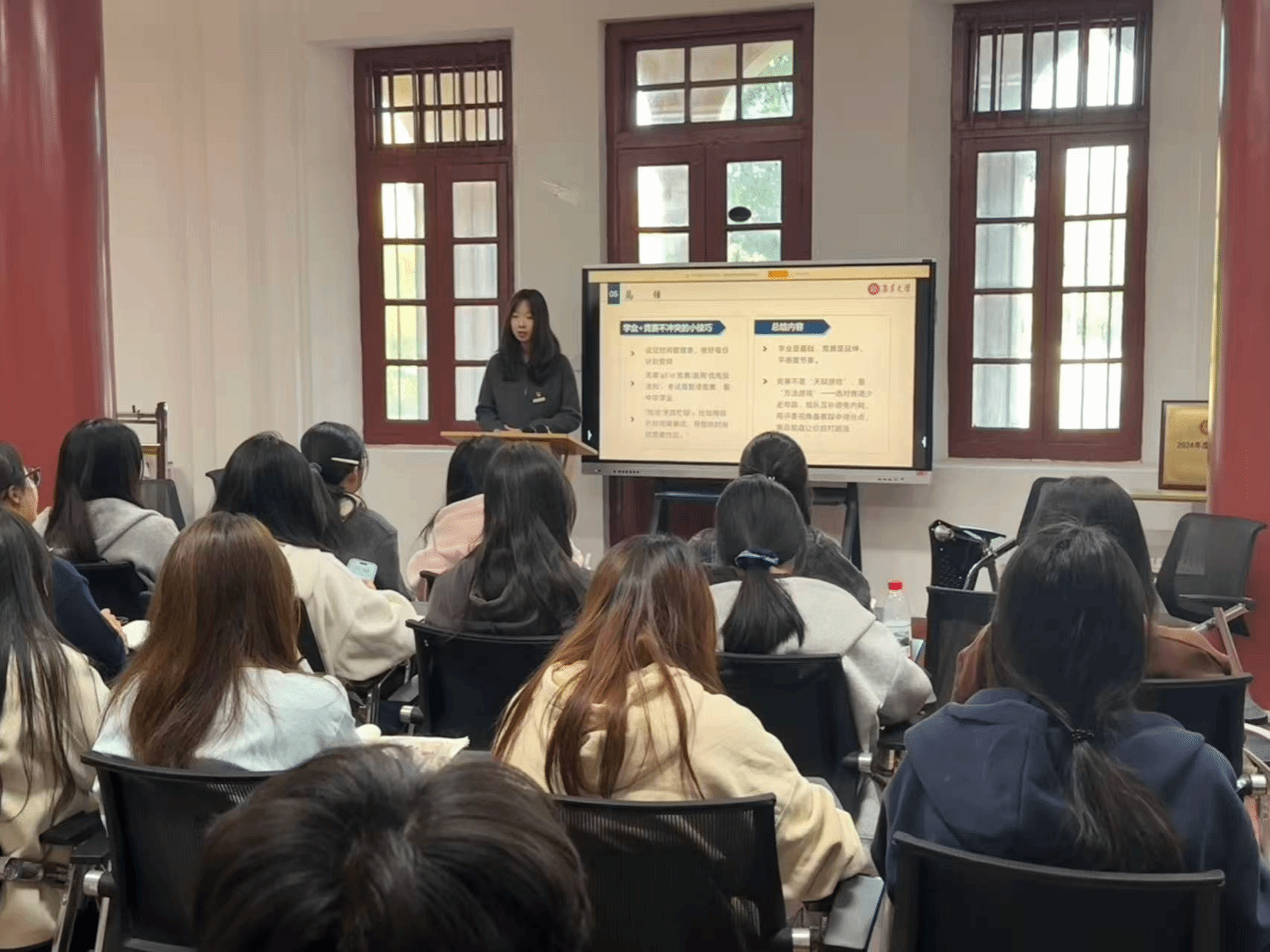 在交流环节,集美大学财经学院国贸系优秀学生党员和学生干部代表分享了专业学习、学生工作和科创竞赛的经验。他们从竞赛选择、团队协作、时间管理等方面展开,结合自身实践,为在场学生提供极具启发性的建议。分享内容契合学生实际,具有实践价值,为我院学生在学业与党建实践提供了有益借鉴。