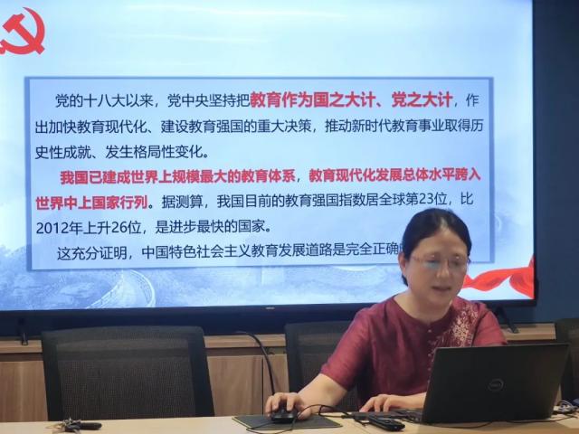 6月13日下午,国际商贸学院党总支在一站式党员活动室召开理论学习中心组扩大会议。会议围绕“加快建设教育强国为中华民族伟大复兴提供有力支撑”和“实干担当促进发展”两个专题进行深入学习和交流研讨。徐薇副院长主持会议,党总支班子成员、各支部书记、各教研室主任、专业负责人参加会议。