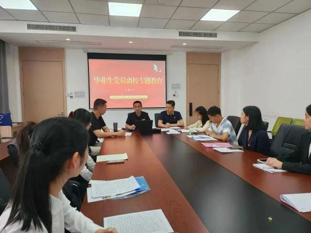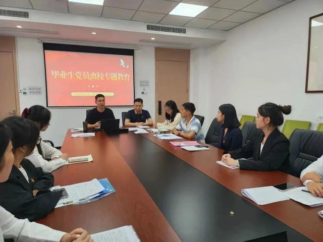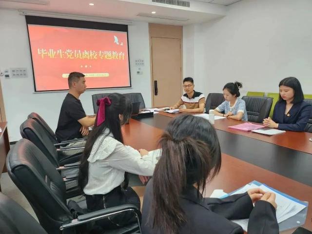 为加强毕业生党员离校教育管理,进一步强化毕业生党员的党性意识、宗旨意识和组织纪律观念,国际商贸学院学生第一、第二党支部邀请学院党总支副书记黄昆仑、马克思主义学院综合办主任邓力、学院团总支书记赵世一、组织员彭幸子等老师,围绕加强理论学习、坚定理想信念、筑牢网络阵地、增强廉洁意识、做到以身作则等专题,在毕业生党员离校前开展最后一次专题教育。将“大理论”同学生关注的“小事件”相结合,用贴心话讲清大道理,引导向先进典型学习、向榜样人物看齐,提高党性修养,凝聚磅礴力量。