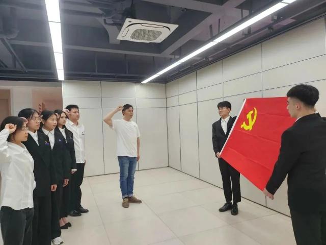 “我志愿加入中国共产党,拥护党的纲领,遵守党的章程......”国际商贸学院学生第一、第二党支部举行预备党员接收大会和预备党员转正大会,大会上,新党员进行入党宣誓,老党员重温入党誓词。面对党旗,党员举起右拳,庄严宣誓,许下为共产主义奋斗终身的铮铮誓言。