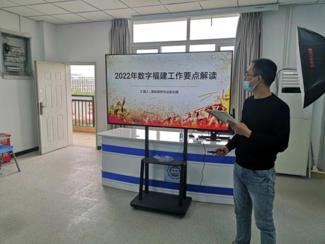 林存文老师对《福建省第十四个五年规划和二〇三五年远景目标纲要》进行全面解读,指出十四五规划的重点任务:一是加快数字化发展,建设新时代数字福建;二是实施扩大内需战略;三是全面提升对外开放水平,加快建设开放强省,四是探索海峡两岸融合发展新路,建设台胞台企登陆的第一家园。结合这些重点任务,林老师提出了关于专业定位的思考:加快国际商务专业和跨境电子商务专业数字化转型;培养既要掌握外贸专业技能又要能够服务内贸发展需要的人才;人才培养区域特色要从面向欧美向服务一带一路、金砖国家转变。树立“大海洋”观念,立足专业群定位,挖掘专业定位与海洋特色。