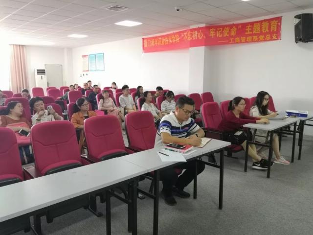 10月24日中午,工商系党总支在翔安校区导游实训室召开“不忘初心、牢记使命”主题教育第五专题“主动担当作为”集中研讨会,全体工商系党员老师到场参加。