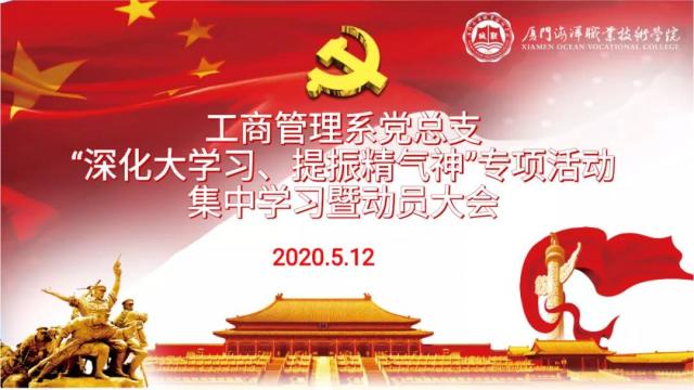 会议传达学习了《中共厦门市委关于充分发挥全市各级党组织和党员作用为统筹推进疫情防控和经济社会发展提供坚强政治保证的通知》(厦委〔 2020〕 21 号)、《中共厦门市委办公厅关于在统筹推进疫情防控和经济社会发展中进一步提振干部精气神的通知》(厦委办〔 2020〕 40 号) 、《关于在全市机关国有企事业单位党组织和党员干部中开展“深化大学习、 提振精气神”专项活动方案》(厦三新组办〔 2020〕 1 号)和《中共厦门海洋职业技术学院委员会关于开展深化大学习 提振精气神专项活动的实施方案》(厦海职院委〔2020〕23号),部署了《工商管理系关于开展”深化大学习 提振精气神“专项活动的实施方案》安排。