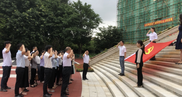 此外,全体党员老师在赖副书记的带领下,面对党旗,重温入党誓词。共产党员要发挥先锋模范精神,永葆共产党员的先进性。