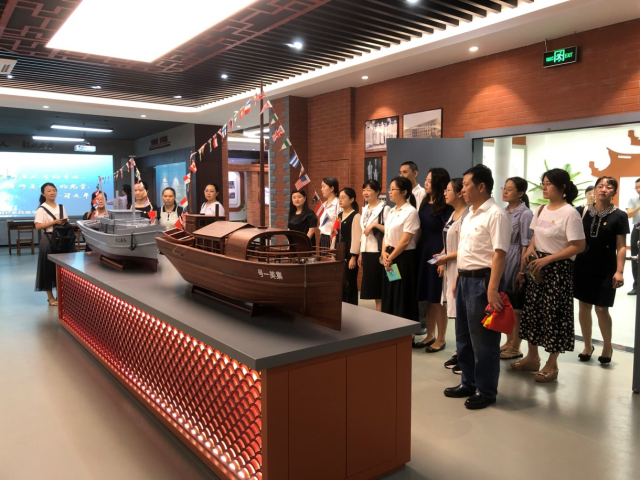 党员们参观了我校的世界船模文化展览馆。展览馆以“‘船’承百年诚毅,匠起吾辈同心”为主题,由上百艘船模组成,以舟船演变为轴,从一叶扁舟、丝路启航走向向海图强、合作共赢,向人们展开舟、筏、船舶、蒸汽船、柴油船的演变历史画卷,讲述东西方航海文化的起源、演变及传承,领略郑和七下西洋波澜壮阔的历史片段,描绘蒸汽时代向海图强的历史剧变,走向现代柴油船时代贸易与和平的互利互赢。