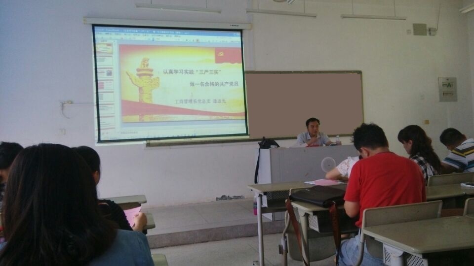 2015年9月22日下午,工商管理系党总支书记潘志光同志给工商系全体党员上了一堂“三严三实”专题辅导课。他首先就“三严三实”的基本内涵、精神实质和实践要求进行了讲解;其次,就当前干部队伍中存在的“不严不实”问题进行了分析;第三,结合实际,指出我系在“三严三实”方面存在的主要问题;最后,潘书记对各党支部和党员同志提出了学习要求,并要求认真组织开展好“三严三实”专题教育。