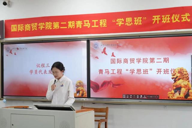 3月11日下午,国际商贸学院第二期青马工程“学思班”开班仪式在翔安校区举行。学院党总支书记王火灵、副书记周仕仁、组织员彭幸子、校团委美育科科长曾美静以及学院辅导员老师出席开班仪式。