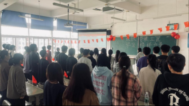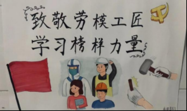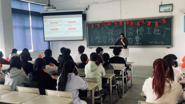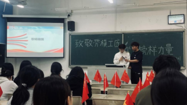 团支书向大家分享全国劳动模范的事迹,介绍劳模精神的内涵,通过对雷锋、王进喜等劳模工匠的介绍,同学们更好地明白劳模工匠精神源于身边每一个身份普通、岗位平凡、业绩突出的劳动者。
