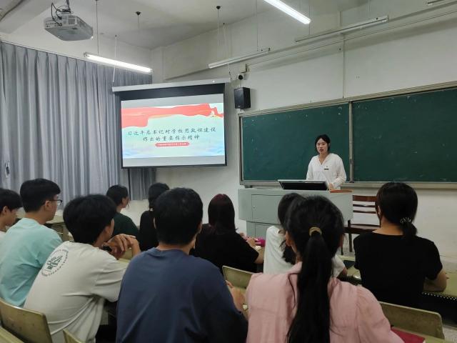 习近平总书记对学校思政课建设作出重要指示强调,不断开创新时代思政教育新局面,努力培养更多让党放心、爱国奉献、担当民族复兴重任的时代新人。习近平总书记的重要指示鼓舞人心、催人奋进,国际商贸学院学生第一、第二党支部的“商习语研读”读书班内化于心、外化于行。