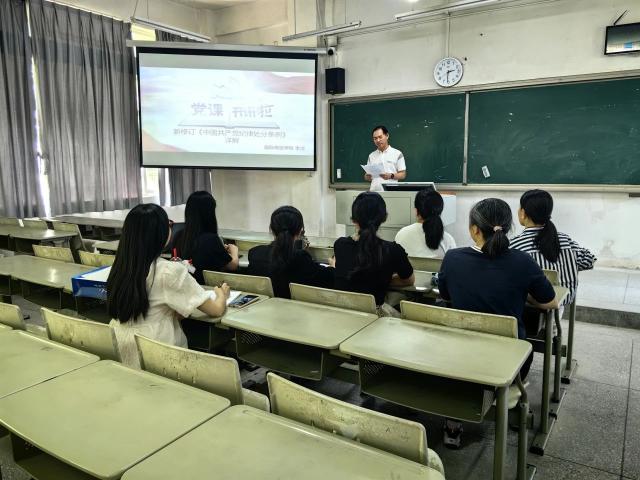 李洋在本次党课中围绕“两个确立”“两个维护”以及《条例》新修订的重要内容展开阐述。