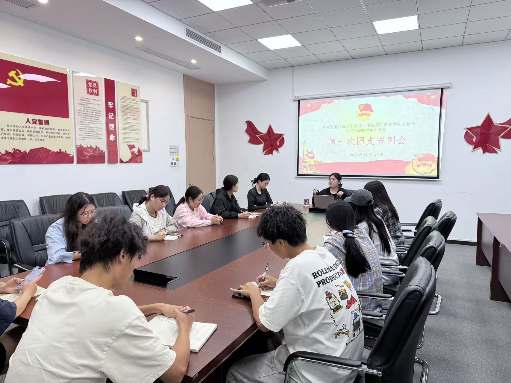 近日,国际商贸学院于敦睦楼309会议室召开本学期第一次团支书例会。会议由学院团总支组织部林诗盈主持,2024级、2025级各班团支书和学院团学组织成员参加。