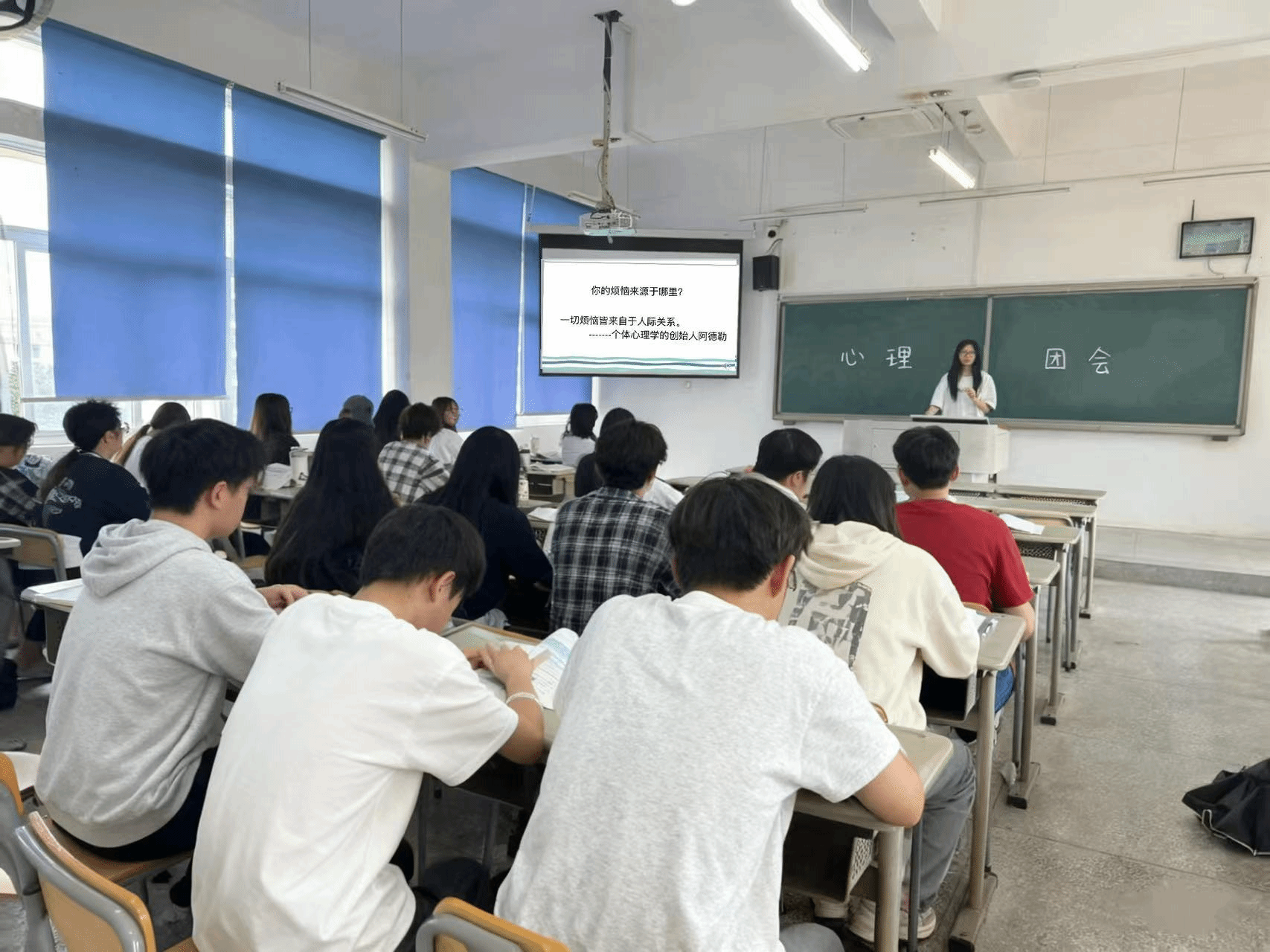 国商3242班心理委员以“朋友圈的‘点赞之交’算真朋友吗?”为题开启讨论,随后通过“书信传声”活动,鼓励同学们向在意的人书写未说出口的心里话。不少同学在纸上卸下了日常沟通的“社恐铠甲”——有人写下对室友默默帮忙的感谢,有人坦诚了之前误会的歉意,信纸传递间,现场多次响起轻声的感慨“原来TA是这么想的”。这场心理班会的开展让同学们拉近了彼此的距离,懂得了如何用“心”去“谈”朋友。