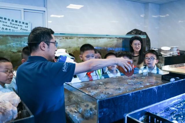 在珍稀海洋生物繁育研究中心,专业人员带着学生们欣赏五颜六色、形态万千的活体珊瑚。同学们兴奋地说,自己是第一次看到这么多种类的珊瑚,真是大开眼界!通过聆听专业人员的讲解,学生们不仅学习到了珊瑚的生长周期、培育条件以及生态价值等方面的知识,同时也在心中默默立下了爱护海洋生态环境、共同守护蓝色家园的决心。