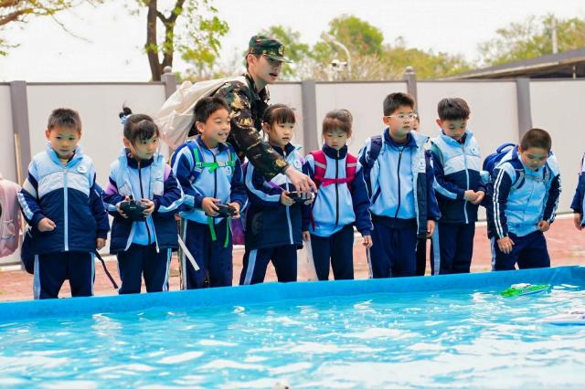 在“水上足球狂欢”环节,孩子们操控着遥控船模,在水池上进行足球射门比赛。这个环节不仅让孩子们体验了水上运动的乐趣,还锻炼了他们的手眼协调能力和团队合作精神。孩子们在欢声笑语中,不仅了解了航海模型这个中小学的白名单赛事,还体验了科技与运动的完美结合,感受到了团队合作的力量和乐趣。