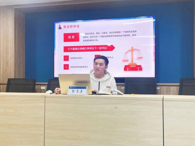 微微晨曦迎宪法,宪法声声入人心。12月5日-7日,我院在一站式党群活动中心举办“学宪法,讲宪法”宪法晨读活动。在学院辅导员老师彭志勇带领下,师生们深入了解宪法,学习宪法原则、精神内涵和社会主义核心价值观等,感受宪法的神圣和庄严。一字一句,铿锵有力,声声入耳,字字入心,宪法精神浸润师生们的心田。同时,彭志勇以自身法律专业切入,给学生普及了部分刑法、民法相关知识,让学生领悟法律与道德、行为规范与权利义务之间的密切联系。