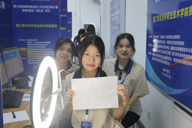 11月4日,第十届海峡两岸暨港澳大学生职业技能大赛“新媒体直播赛项”(高职组)在厦门华天涉外职业技术学院举办,来自内地和港澳地区的28支队伍参加高职组的比赛。由我院储燕姗、刘婷老师指导的王然然、宋欣楠、许林琳同学组队参加该赛项并获得团队三等奖。该参赛团队继上周末获得厦门市职业直播电商赛项二等奖之后,勇闯新赛项并再获佳绩。