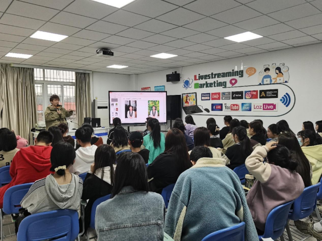 企业导师为同学们介绍了跨境直播的最新动态,包括AI虚拟数字人直播,虚拟动画直播,AI仿真换脸技术等黑科技,并展示了过往产教融合项目的部分学生业绩成果。课堂上,同学们积极参与互动,分组完成直播初体验,课堂气氛活跃。在后续课程中将会大量融入企业真实工单开展实训教学,我院学生将通过产教融合项目,提升实战能力。