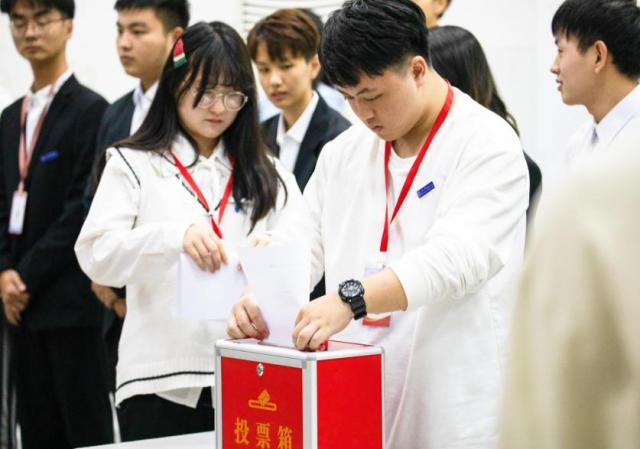 11月16日,厦门海洋职业技术学院国际商贸学院第十七次学生代表大会顺利召开。本次大会到场嘉宾有国际商贸学院团总支书记赵世一老师、国际商贸学院学生党支部书记彭幸子老师,大会共有108名学生代表到场,他们分别来自国际商贸学院2020级、2021级各班级学生代表,其中包含学生干部、优秀共青团员和国际商贸各班级优秀学生代表。