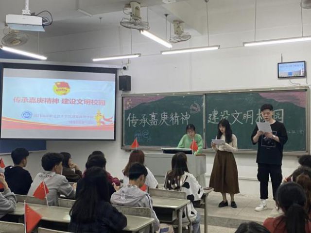 在学习嘉庚精神后,同学们观看了关于嘉庚精神的视频并诵读经典读文,并由主持人带领全班同学进行校园文明举止的学习,之后由同学进行“七律吟嘉庚”活动。其后,主持人向大家提出禁烟宣传:坚决拒绝香烟的引诱,经常提醒自己“再吸一支烟足以令戒烟的计划前功尽弃”,应避免到各类吸烟场所参与吸烟活动,养成健康良好的生活习惯。