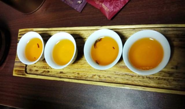 第三环节老师现场给大家冲泡了五种红茶,为同学们泡了生普、金骏眉、滇红、普洱、野生红茶五种茶。倒入公道杯中的茶汤透亮,均匀斟入品茗杯,分送给在场的各位同学。悠悠茶香,芬芳怡人。