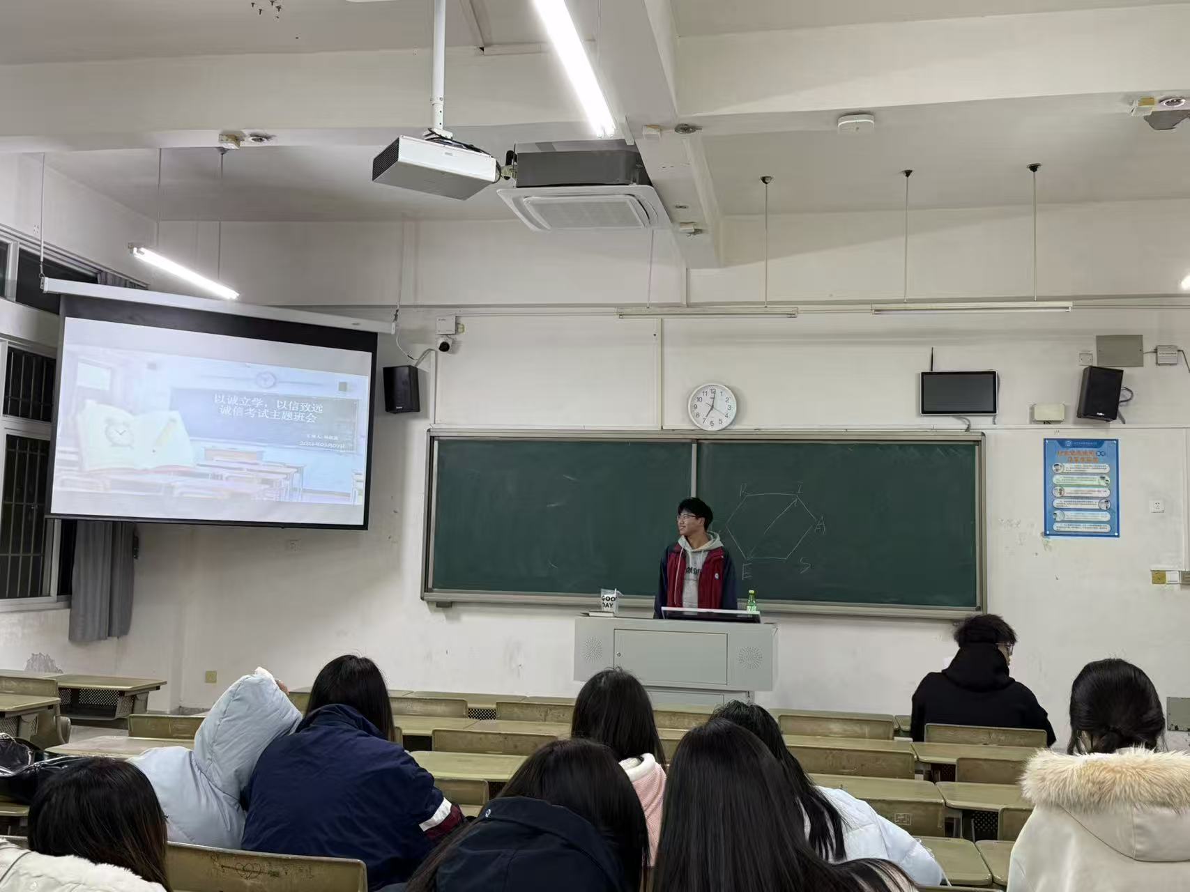 班会上,各班学委围绕“以诚立学、以信致远”的内涵展开阐述,并结合学术不端警示案例与诚信典型事迹,组织同学深入学习《普通高等学校学生管理规定》中关于考试纪律的相关条款,阐明诚信考试的重要性及其对个人学业与长远发展的影响。同学们在交流中纷纷表示,诚信不仅关乎考纪,更是个人品格与社会责任的体现。