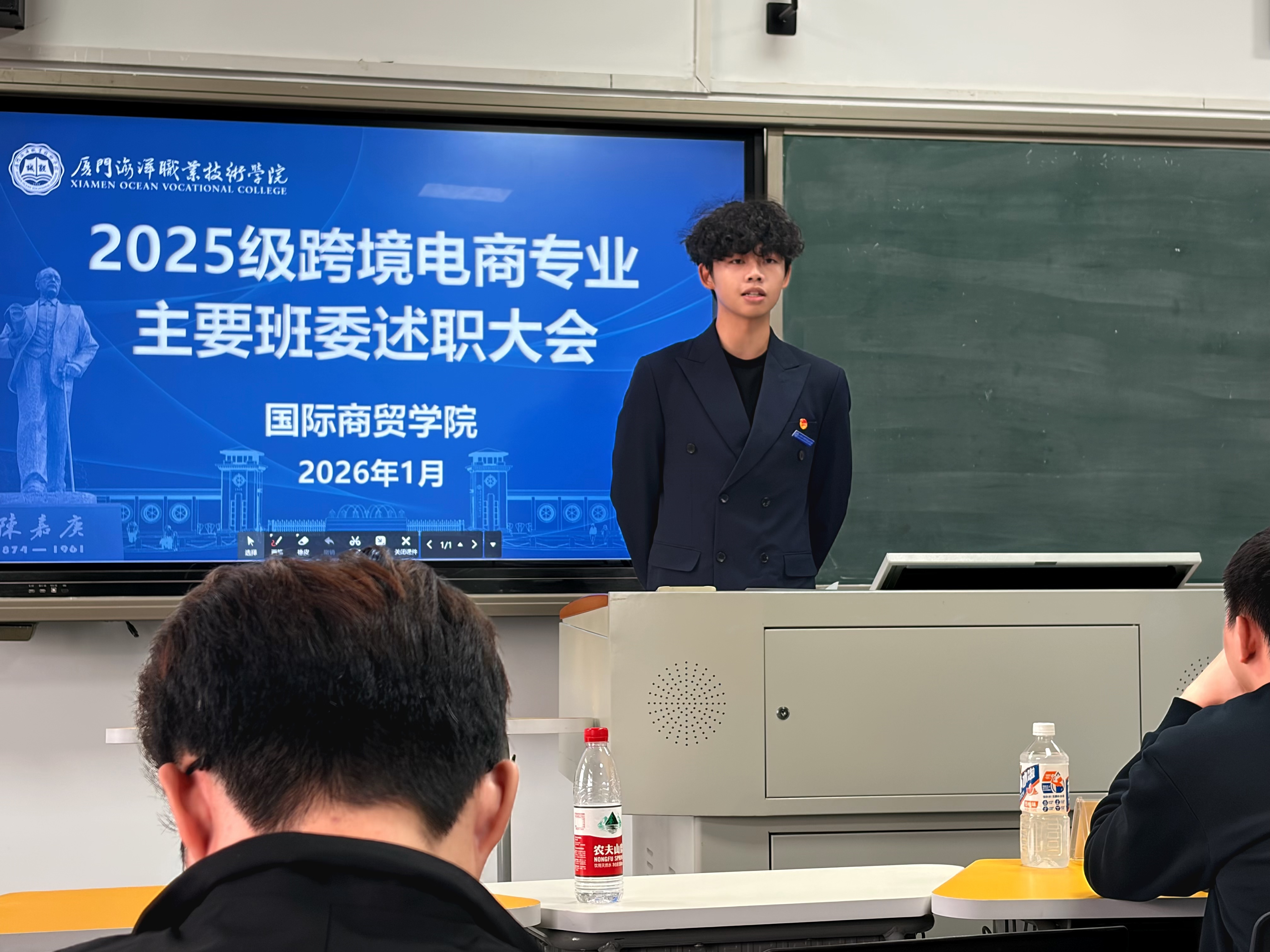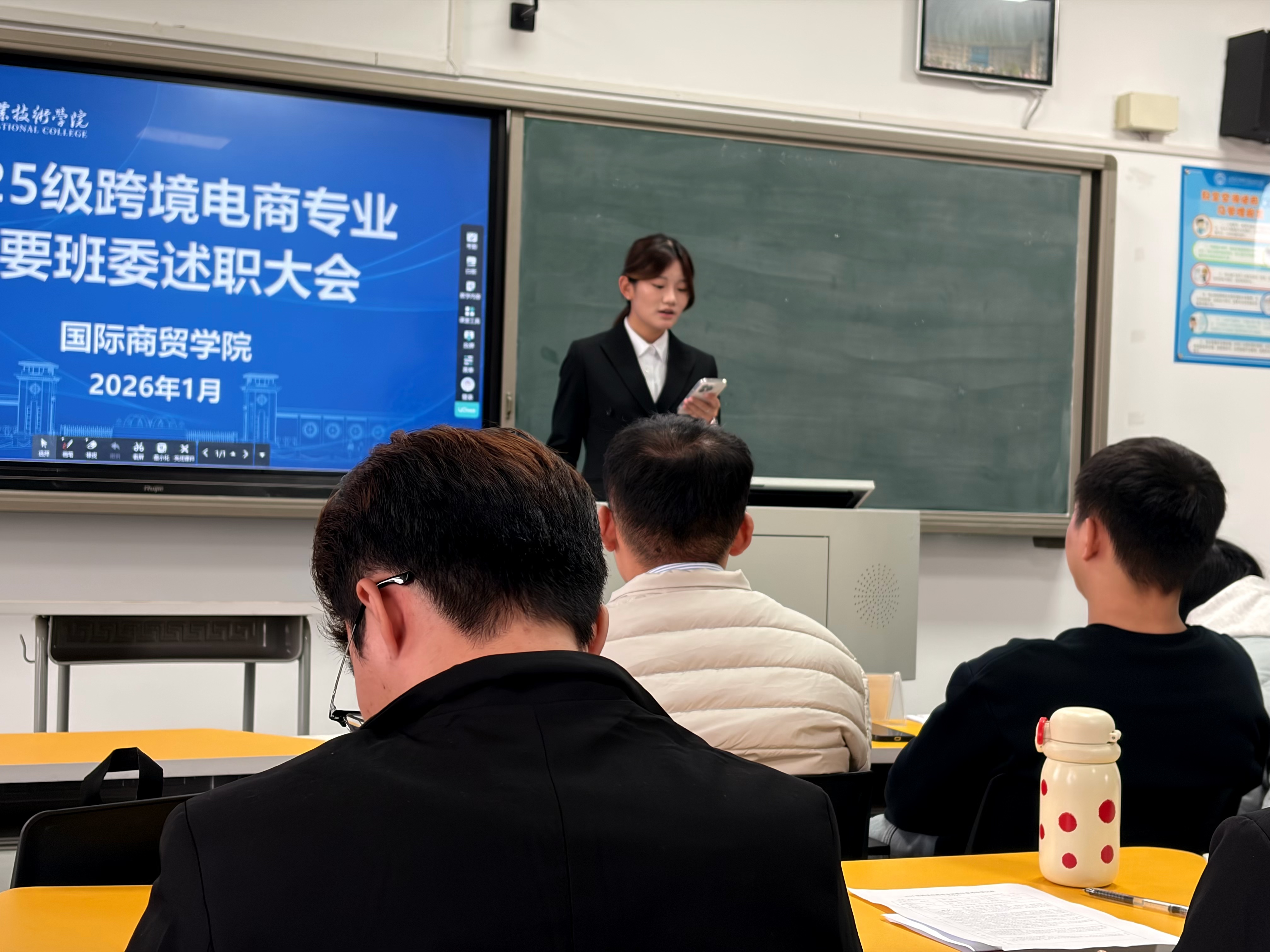 班委则聚焦履职复盘与团队协作提升,他们依次登台,围绕班风学风建设、日常事务统筹、专业活动推进、同学服务保障等核心工作,细数履职以来的举措与实绩,坦诚剖析问题不足,并结合专业实际明确改进方向与具体计划,以务实态度交出“履职答卷”,为新学期发展锚定清晰方向。