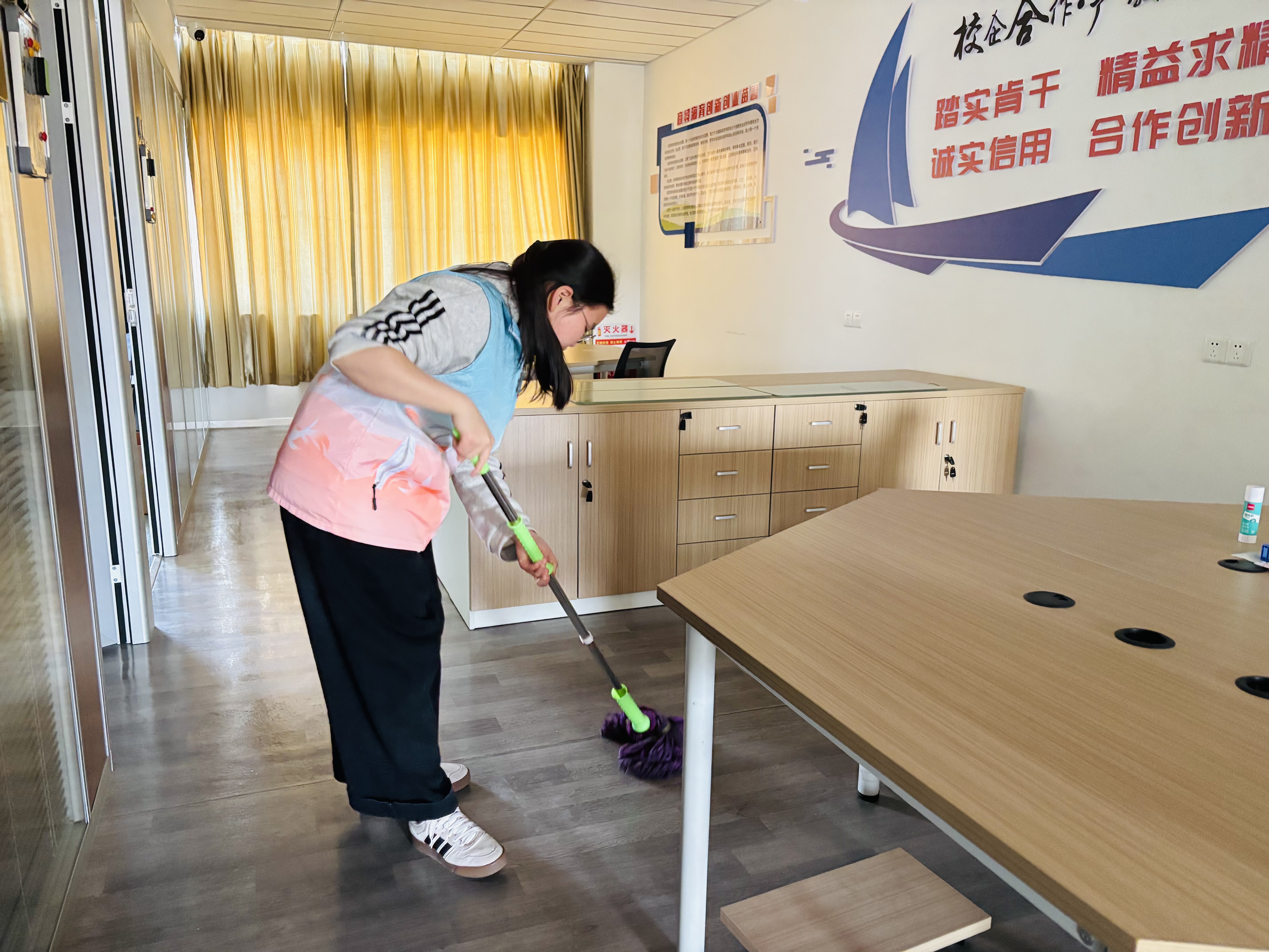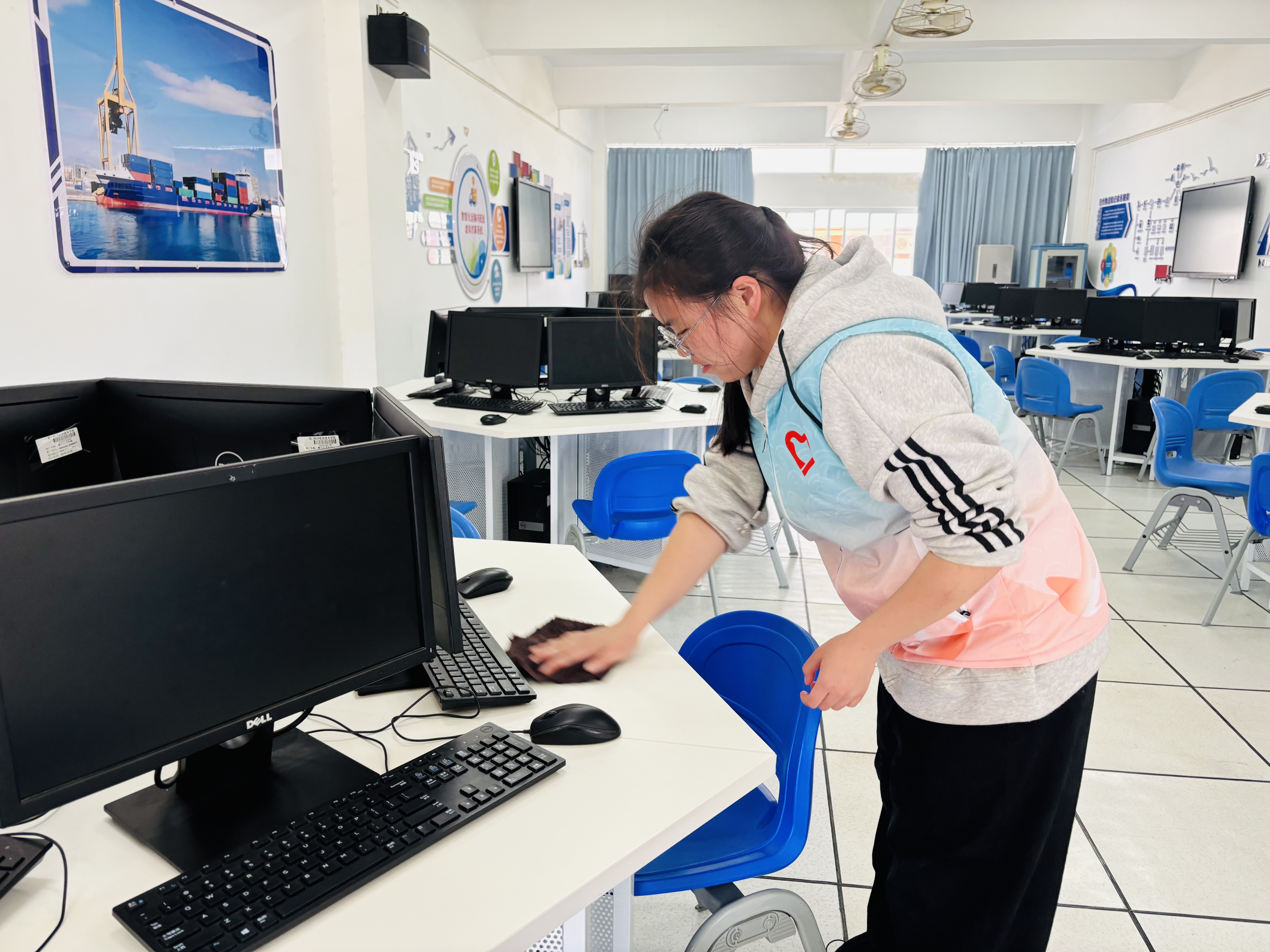 实训场地是学习的“主战场”,整洁安全方能护航成长。学院组织志愿者开展实训室清扫行动,大家分工明确、干劲十足,有的弯腰清扫地面杂物,有的细心擦拭实训设备,连角落缝隙的灰尘都不放过;有的仔细排查线路插头,有的分类规整工具耗材,全力保障实训环境的整洁有序。这场“实干型”志愿服务,让雷锋精神在脚踏实地的行动中落地生根,同学们用微光之力为校园建设添砖加瓦,诠释着对学习阵地的珍视与担当。