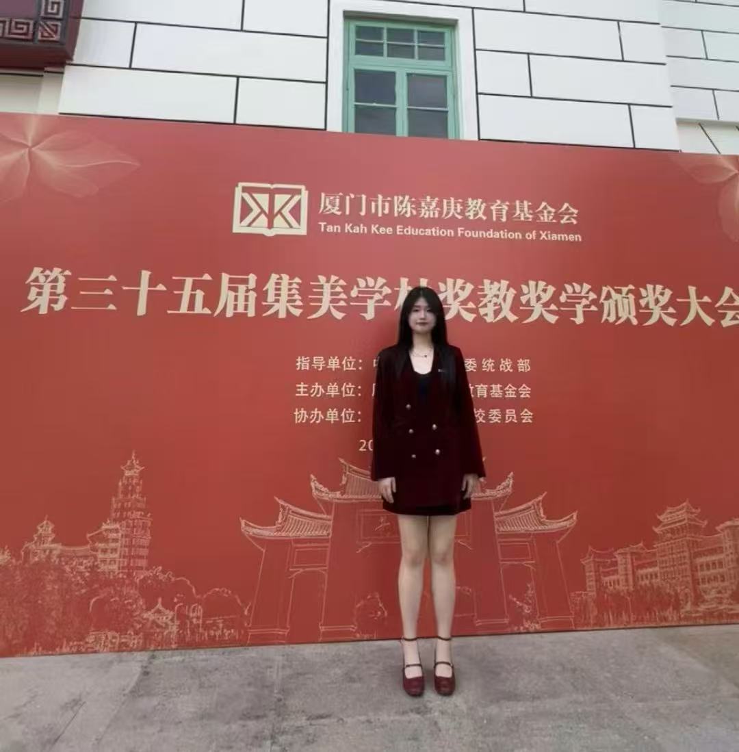 自入学以来,她始终以奋斗为底色,在学习、工作、竞赛与实践的多维赛道上全面发力、持续精进。先后斩获2025年福建省大学生创新大赛金奖、2025年福建省职业院校技能大赛“智慧金融”赛项二等奖、第十一届海峡两岸暨港澳大学生职业技能(能力)大赛“期货投资模拟交易”赛项二等奖等省市级荣誉;学业持续稳步提升,大二学年综测排名居专业第一,获评厦门市陈嘉庚教育基金会奖学金、校优秀学生一等奖学金、校“优秀学生干部”“优秀共青团员”等称号;参与多项社会实践与志愿服务,以实际行动践行青春担当。
