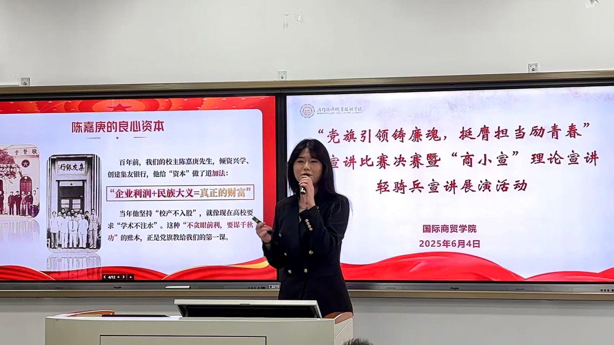 “青年者,当坚守初心,勇担使命。”作为入党积极分子,朱小清始终秉持坚定的理想信念与无私的奉献精神。她积极要求思想上进,2025年3月至4月参加国际商贸学院第二期青马工程“学思班”学习;她主动践行社会责任,累计献血量超500ml,用热血传递爱心。