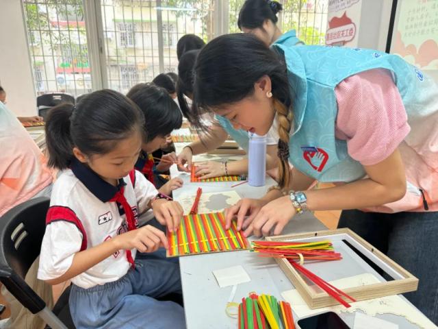 非遗润童心,传承“青”力量。青年们带领少先队员沉浸式体验非遗竹编。在竹编言志、指尖传情、巧手妙做中,大家将传统文化非遗竹编与中国式现代化蓝图交相辉映,把对祖国的深情祝福和对美好生活的感悟,融入一幅幅栩栩如生的竹编作品,在以文化人、以文育人的实践体验中领略中华优秀传统文化的魅力,增强民族自豪感,坚定文化自信。