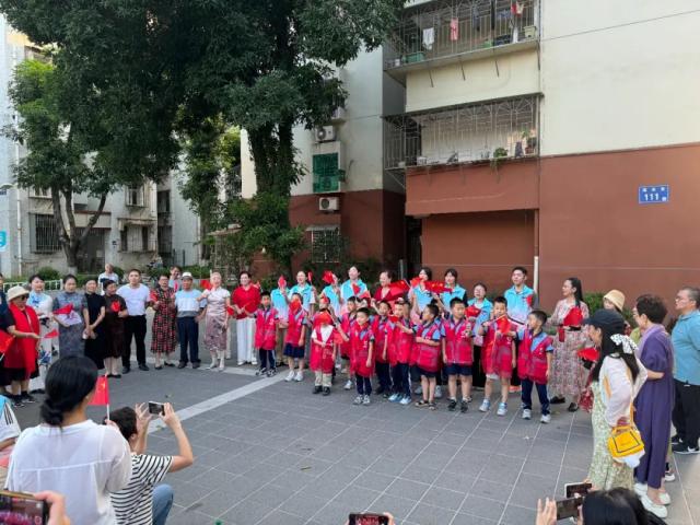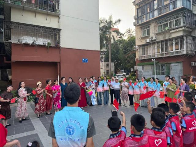 声在华夏,舞动青春。青年和群众在莲岳社区小公园,以快闪的形式,歌唱《集美学校校歌》和《歌唱祖国》,表演新疆舞和健身气功,朗诵《祖国颂歌》和《我的祖国》。清新悦耳的歌唱,翩翩婀娜的舞姿,深情激昂的朗诵,吸引了社区群众驻足参与,大家挥舞国旗,满怀激情,共唱爱国之歌。