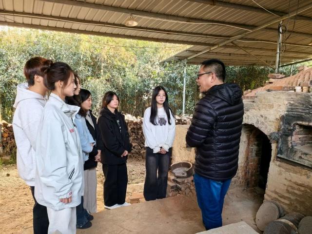 建盏,工艺独特,釉色斑斓,作为宋代名窑之一,以其独特的釉色和造型赢得了世人的赞誉,同时也是国家级非物质文化遗产。师生们走进建盏工坊,近距离观赏了建盏的制作过程。从选土到拉坯再到焙烧,每一道工序都凝聚着匠人的心血与智慧。学生们在师傅的指导下,亲手尝试拉坯、修坯、入窑、出窑等技艺、工序,深刻体会到了建盏工艺的博大精深。