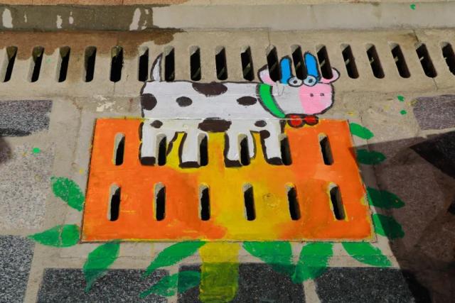 “你快看我画的,我要把井盖变成一幅五彩缤纷的画。”