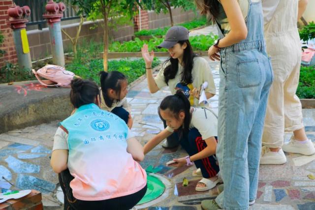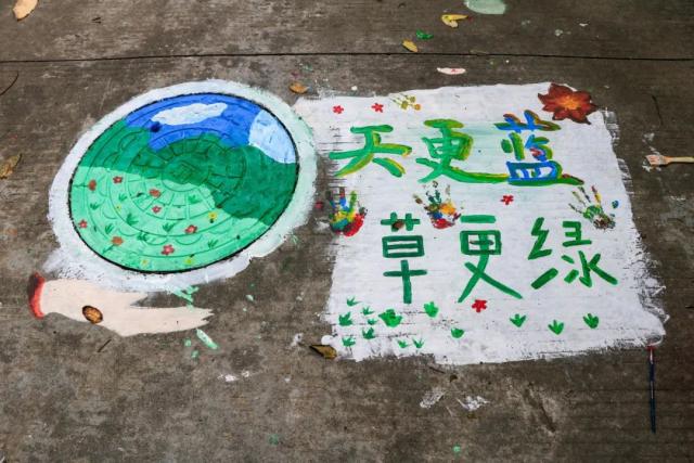 志愿者们和小朋友们在美术老师的带领下,积极构思方案、确定主题、分工合作。大家集思广益,充分利用井盖的形状和特征,参考周边的环境,围绕科普环境保护主题和环保元素巧妙设计、构图,忙得不亦乐乎!
